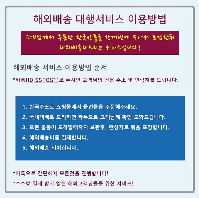안녕하세요 해외배송팀 입니다. (카톡ID : SSPOST)