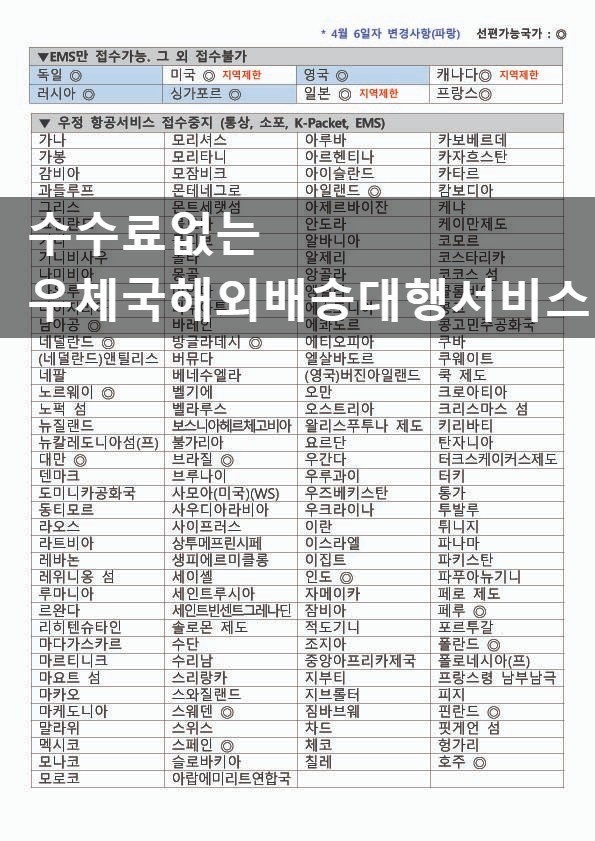 현재 코로나 사태로 인하여 배송중지,지연되는 국가가 있으니 검토부탁드려요.