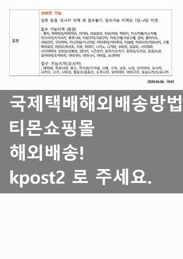 티몬쇼핑몰 해외택배를 보내실때는 수수료없이 케이포스트와 함께 해주세요