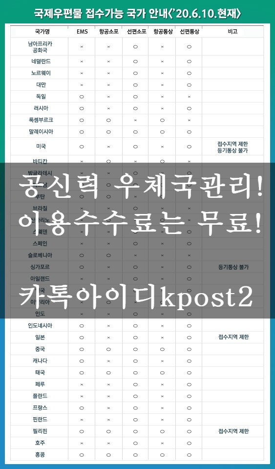 현재 국가별로 우체국ems 중지,지연이 심각합니다. 별도카톡받으시고 진행부탁드립니다.