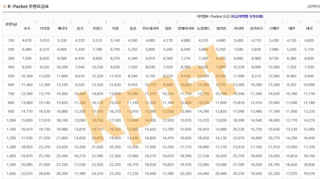 우체국에서 제공하는 우체국ems/선편/프리미엄 배송요금조회링크!