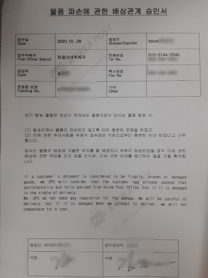 - invoice : 모든 비서류는 인보이스 3부 필수, 인보이스에 수취인 전화번호 필수