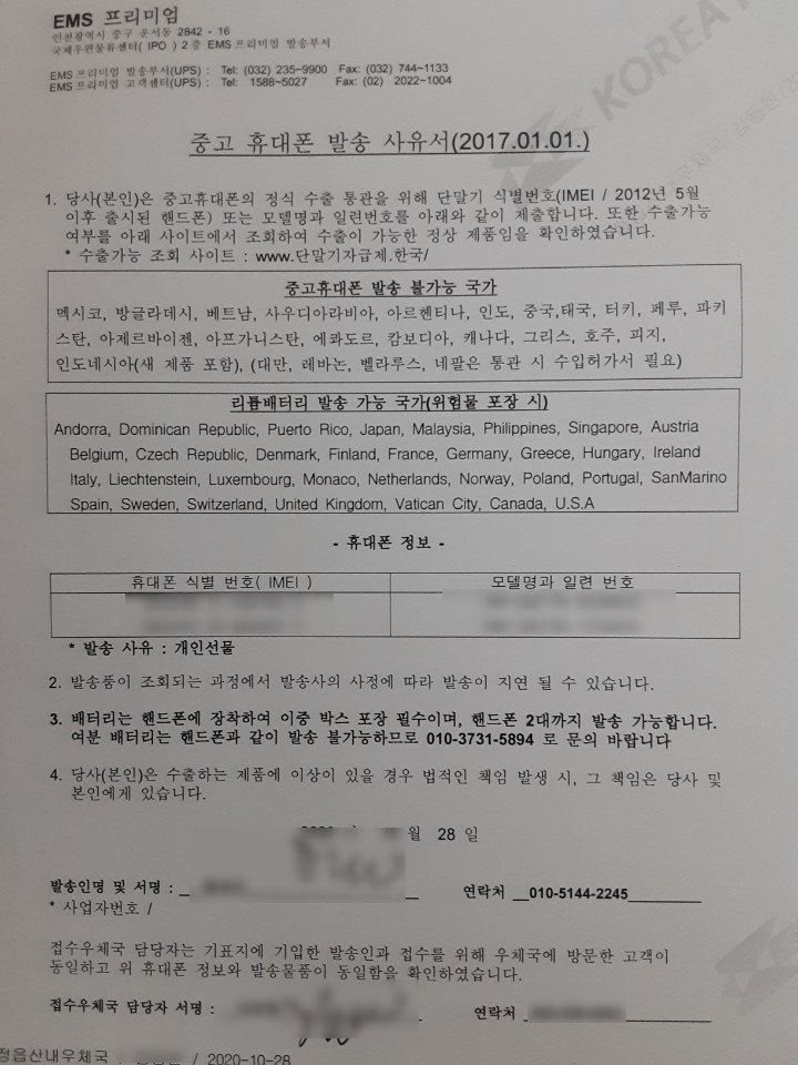 핸드폰을 국제소포로 한국에서 해외로 보내실때 답답하셧죠...