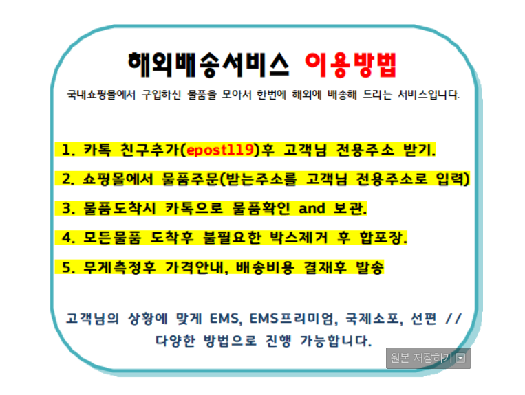 한국에서 해외배송 보낼경우도요~