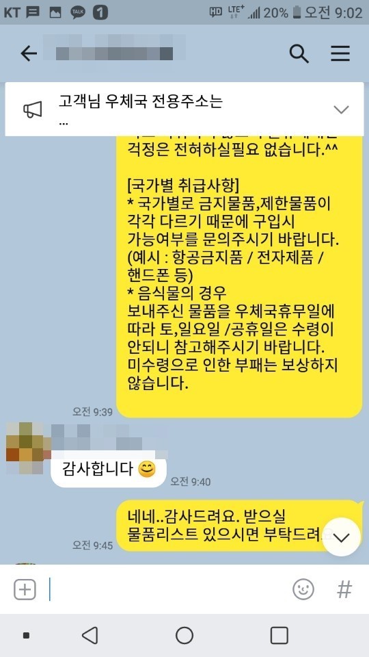 어떤 문의도 상관없으며, 모든 해외배송정보를 카톡을 전달합니다.