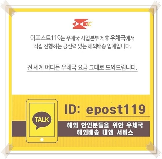 우선은 톡으로 "epost119"를 친구추가 해주시고 문의를 주시면 고객님 개인우체국주소(사서함) 받으시고 안내받으신 주소지로 상품만 보내주시면 됩니다.